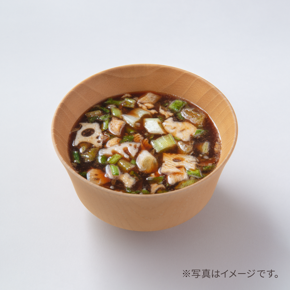 コラーゲン(ベルギー製造)、澱粉分解物、豆みそ粉末、大麦・米たんぱく濃縮物、具(れんこん、ねぎ、ぶどう糖)、米みそ粉末、食塩、ぶどう糖、砂糖、粉末醤油、鰹節粉末、鰹節エキスパウダー、酵母エキスパウダー、煮干エキスパウダー、椎茸エキスパウダー、昆布エキスパウダー、(一部に小麦・大豆・豚肉・ゼラチンを含む)